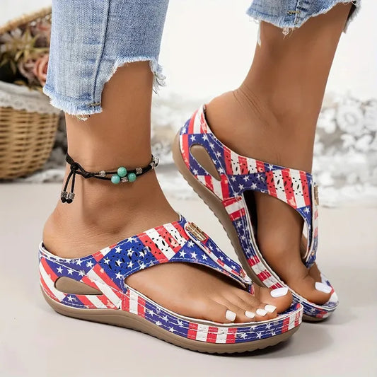 🔥Summer Best Seller🔥Women'S Patriotic Slide Sandals - Stylish American Flag Design