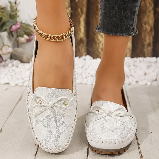 Chic Femen's Loafines con estampado de piel de bowknot y piel de serpiente: cómodas planicies livianas para todas las estaciones, estilo retro